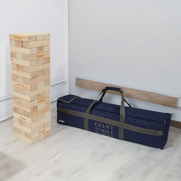 Le Jenga géant de 150 cm est un jeu d’adresse où les joueurs retirent et empilent des blocs en bois sans faire tomber la tour, idéal pour animer vos événements et créer des moments ludiques et conviviaux.